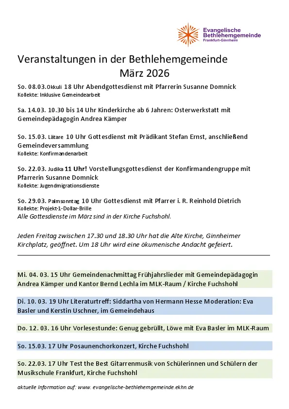 Herzlich willkommen auf der Homepage der Evangelischen Bethlehemgemeinde