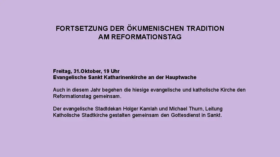 Wegen einer Mitarbeiterversammlung im Stadtdekanat ist das Gemeindebüro am Donnerstag, 30. Oktober, vormittags geschlossen. Am Nachmittag ist das Büro wie gewohnt von 16 bis 18 Uhr besetzt.