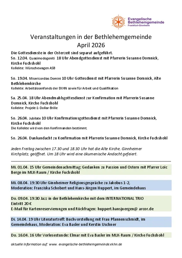 Herzlich willkommen auf der Homepage der Evangelischen Bethlehemgemeinde