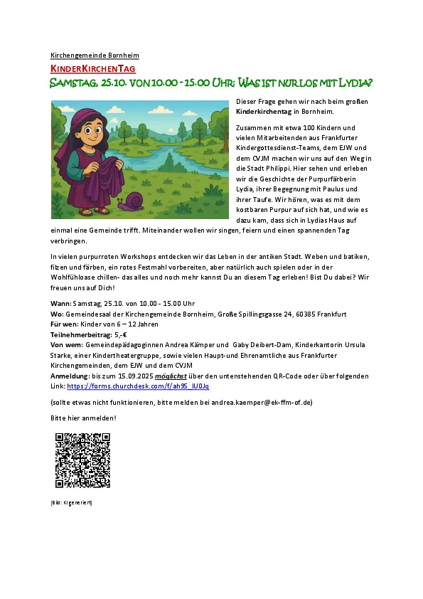 Samstag, 25.10, 10 – 15 Uhr - Kinderkirchentag in Bornheim: „Was ist nur los mit Lydia?“